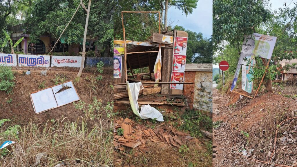 തിരുവനന്തപുരം : തിരുവനന്തപുരം ലോക്സഭാ മണ്ഡലം എൻഡിഎ സ്ഥാനാർത്ഥി രാജീവ് ചന്ദ്രശേഖറിന്റെ ഫ്ലക്സ് ബോർഡുകൾ വ്യാപകമായി നശിപ്പിക്കപ്പെടുന്നതായി പരാതി… പൊൻ വിള, നെയ്യാറ്റിൻകര നിയമസഭ മണ്ഡലങ്ങളിലെയും ഉദിയൻകുളങ്ങര ,അഞ്ചാലിക്കോണം വരെ സ്ഥാപിച്ച ബിജെപി ഫ്ലെക്സ് ബോർഡുകളാണ് നശിപ്പിക്കപ്പെട്ടത്. പരാജയ ഭീതിയെ തുടർന്നാണ് ഫ്ലക്സ് ബോർഡുകൾ നശിപ്പിക്കുന്നതെന്ന് പരാതിയിൽ പറയുന്നു.. രാജീവ് ചന്ദ്രശേഖർ വിജയമുറപ്പിച്ചതിൽ ഭയന്ന് ഇടതു വലതു മുന്നണികൾ സംഘർഷം ഉണ്ടാകുന്നതിനുവേണ്ടി ചെയ്യുന്നതാണെന്നും ബിജെപി ആരോപിച്ചു… അതേസമയം മറ്റ് മുന്നണികളുടെ ഫ്ലക്സ് ബോർഡുകൾ നശിപ്പിക്കപ്പെടാത്തതും സംശയത്തിന് ആക്കം കൂട്ടുന്നുണ്ട്…